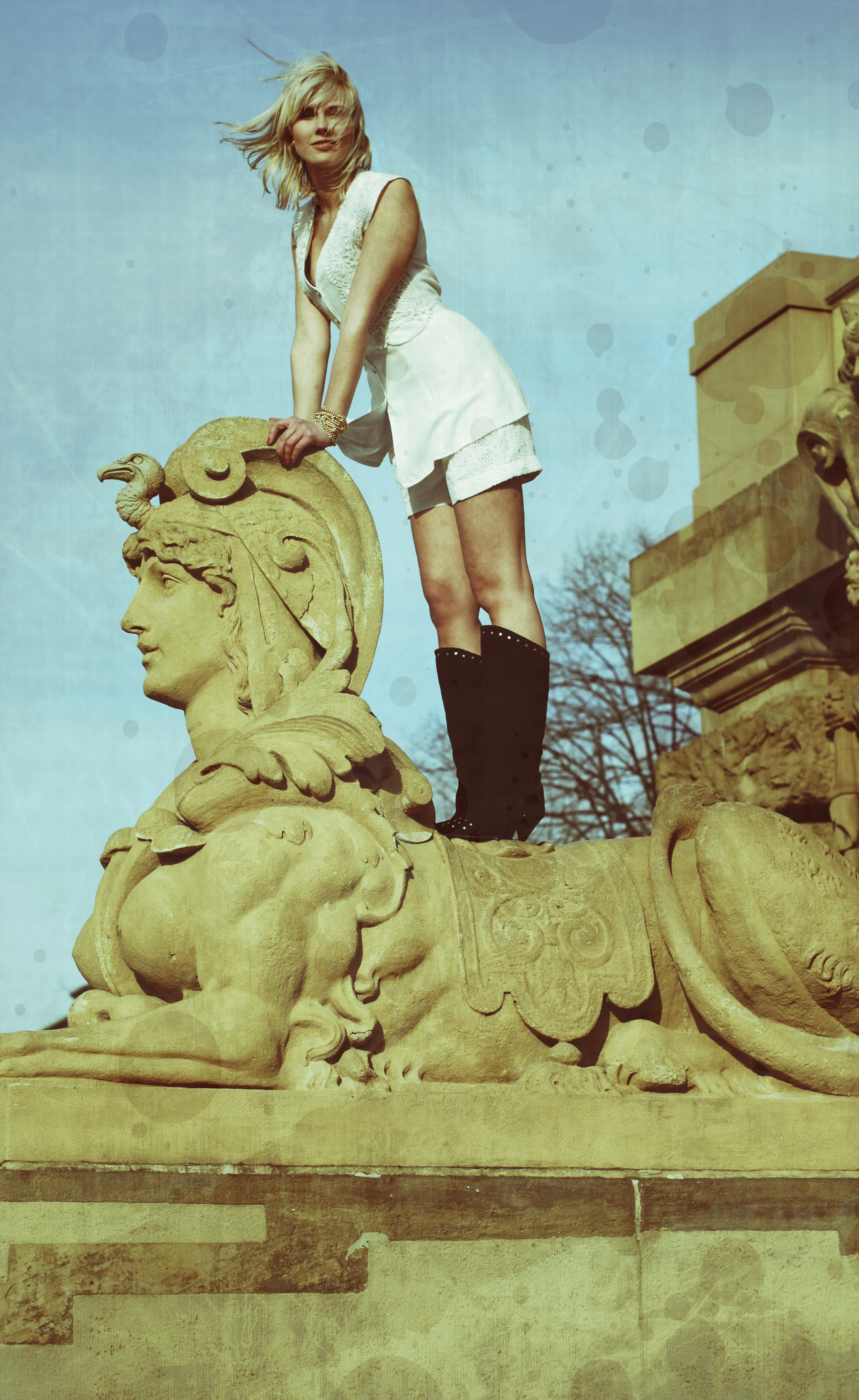 The first project I want to introduce to you is the Pretenders Ma: A couple of years ago me and my best friend worked on a vintage fashion line called the Pretenders Ma, where we collected vintage pieces all around the world and changed the clothes, so you can wear them as individual items no one else has. It was a long process, collecting the things, redesigning them, sewing, and shooting the editorial. We did everything all by ourselves and also casted the models from our own circle of friends which was one of the most exciting things I ever did so far. The concept of the editorial was called dancing with the statues, and we shot the outfits adjusted to the models and the statues we found all around our home town Mannheim.